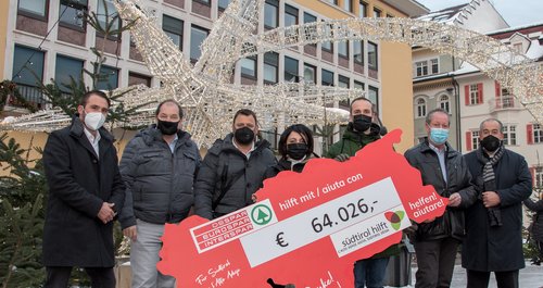 Im Rahmen einer Scheckübergabe am Bozner Waltherplatz konnte Robert Hillebrand „Südtirol hilft“ symbolisch einen Scheck mit der unglaublichen Summe von 64.026 Euro überreichen. Hillebrand unterstrich die Verbundenheit des Unternehmens, das er vertritt, zu Südtirol und den Menschen in unserem Land. Da es auch bei uns Familien gibt, die nicht auf der Sonnenseite des Lebens stehen und unserer Hilfe bedürfen, habe es sich angeboten, „Südtirol hilft“ zu unterstützen. Er dankte dem Vizepräsidenten der Hilfsorganisation, Leopold Kager und dem Vorstandsmitglied Martin Pfeifhofer, für die gute und reibungslose Zusammenarbeit zum Wohle der Menschen in diesem Land. „Südtirol hilft“- Vizepräsident, Leopold Kager, dankte für die wichtige und großzügige Unterstützung. "Ganz im Sinne von Aspiag, aber auch aller anderen Spender, kann ich versichern, dass die Hilfe schnell und unbürokratisch Menschen in Südtirol zugutekommt, die unsere Unterstützung dringend benötigen", betonte Kager.